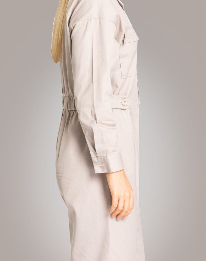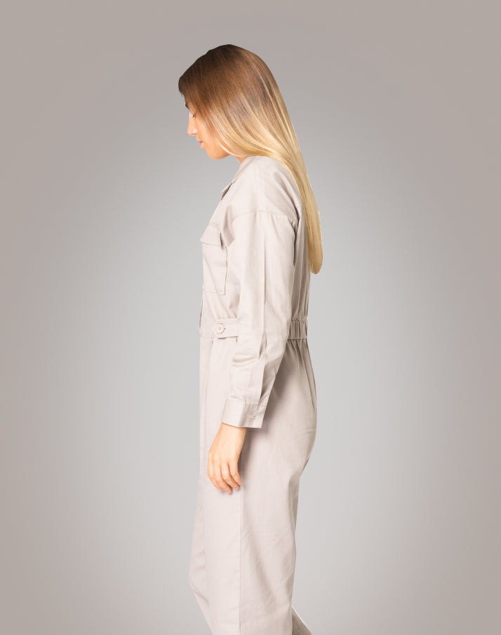 The Casual Tailored Boiler Suit is the perfect blend of comfort and sophistication. Designed with a relaxed yet structured fit, this versatile one-piece features a button-down front, functional chest pockets, and an adjustable waist for a flattering silhouette. Made from soft, breathable fabric, it ensures all-day ease while maintaining a polished look. Whether you're dressing up with heels or keeping it casual with sneakers, this boiler suit is a timeless wardrobe essential for effortless style.